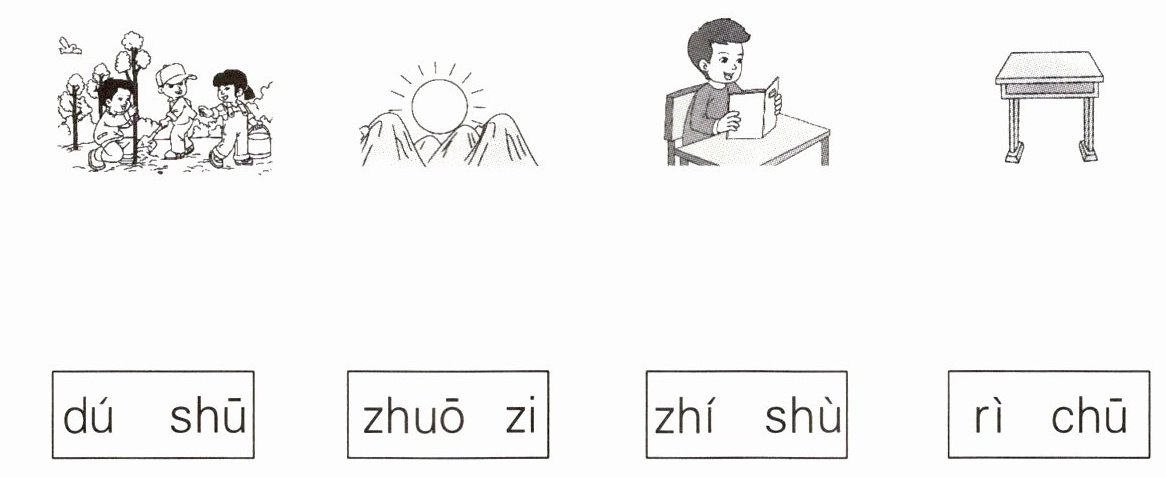 | dú shū | zhuō zi | zhí shù | rì chū |