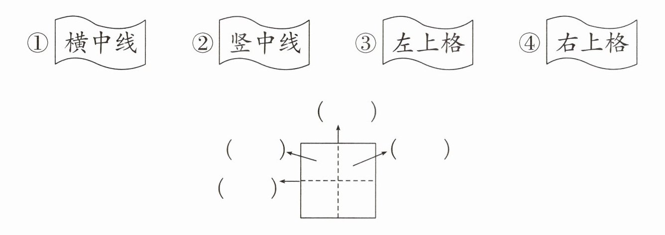 ① 横中线 ② 竖中线 ③ 左上格 ④ 右上格