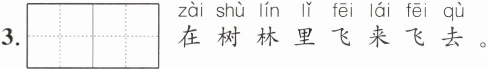 3. $\begin{array}{|c|c|} \hline & xiǎo niǎo \\ \hline & \\ \hline \end{array}\\ \hline & \\ \hline $zài shù lín lǐ fēi lái fēi qù 在树林里飞来飞去。