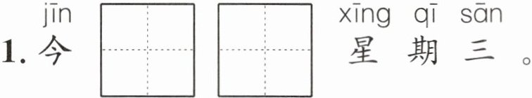 1. 今$\begin{array}{|c|c|} \hline & tiān \\ \hline & \\ \hline \end{array}\\ \hline & \\ \hline $$\begin{array}{|c|c|} \hline & shì \\ \hline & \\ \hline \end{array}\\ \hline & \\ \hline $xīng qī sān 星期三。