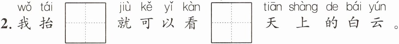 2. 我抬 tóu 就可以看 jiàn 天上的白云。