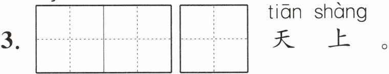 3. $\begin{array}{|c|c|} \hline yuè & ér \\ \hline \end{array}\\ \hline $$\begin{array}{|c|c|} \hline zài & \\ \hline \end{array}\\ \hline $天上。