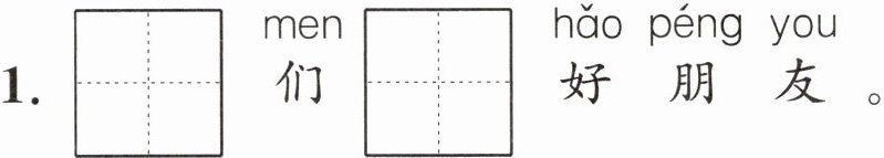 1. $\begin{array}{|c|c|} \hline wǒ & \\ \hline \end{array}\\ \hline 们\begin{array}{|c|c|} \hline shì & \\ \hline \end{array}\\ \hline $好朋友。