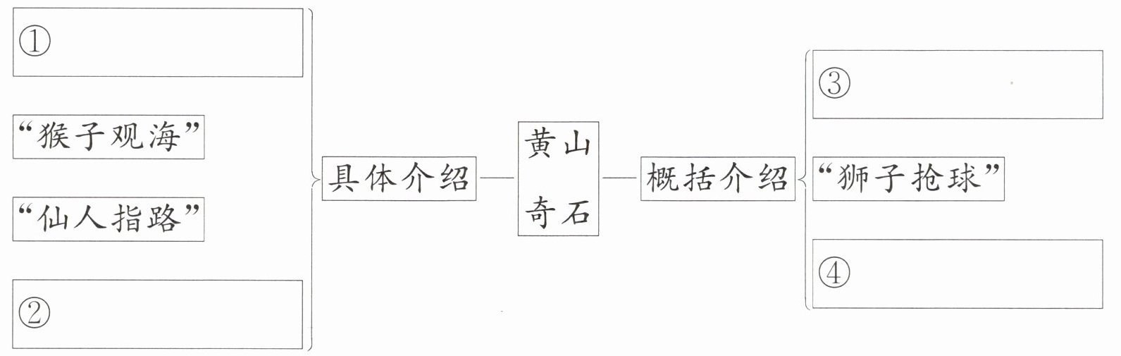 四、黄山上有哪些奇石?根据课文内容,把思维导图补充完整