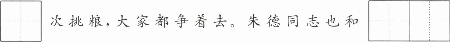 ①朱德同志挑粮食很辛苦 ②朱德同志以身作则,与大家同甘共苦