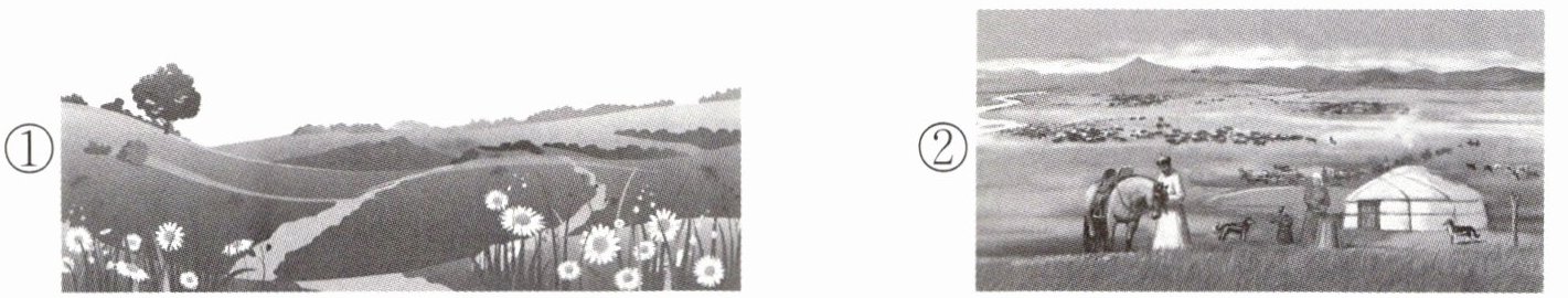 1. 天 野 风吹草低 2. xiàn ② 3. ②