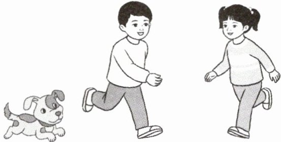 2. 小狗(追 迎)着哥哥跑,妹妹(追 迎)着哥哥跑来。