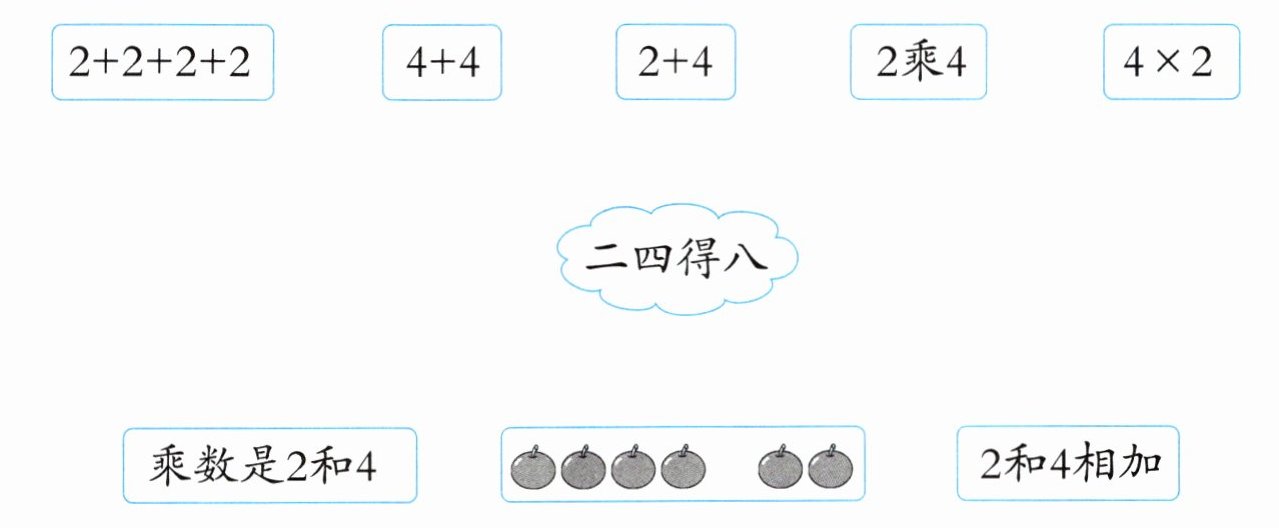4. 下面哪些可以用口诀“二四得八”来计算?(连一连。)