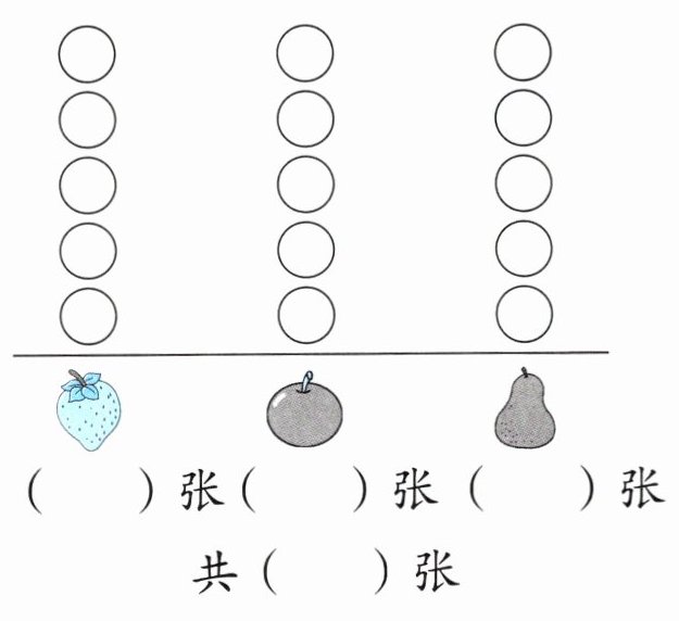 (3)从水果种类来看,( )卡片和( )卡片同样多。