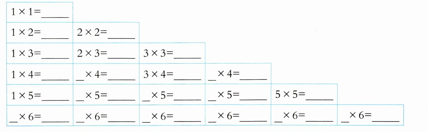 $1×6 = 6$,$2×6 = 12$,$3×6 = 18$,$4×6 = 24$,$5×6 = 30$,$6×6 = 36$。