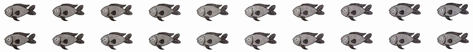 (1) 平均分给 2 只小猫,每只小猫分到()条鱼。