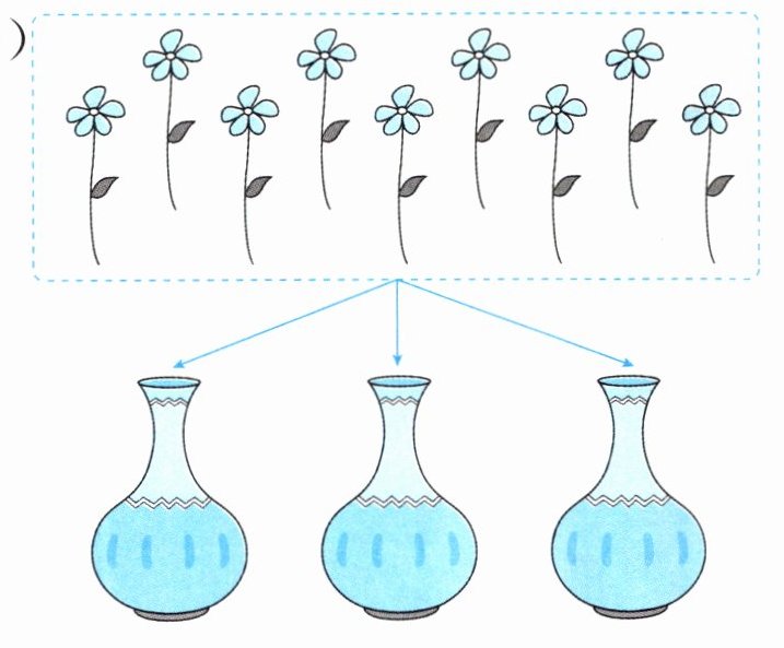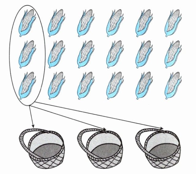 1. 把 18 根玉米平均装到 3 个篮子里,每个篮子装(