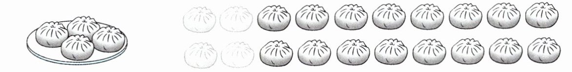 ②有 20 个包子,每盘放 4 个,可以放几盘?