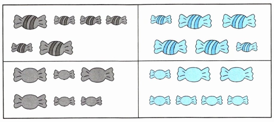 3. 小元将一些糖果连续分类了两次,结果如图所示。