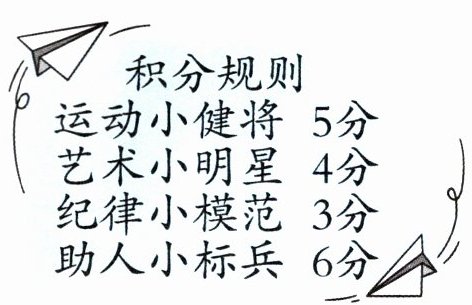 从积分规则看,运动小健将每次$5$分,纪律小模范每次$3$分。