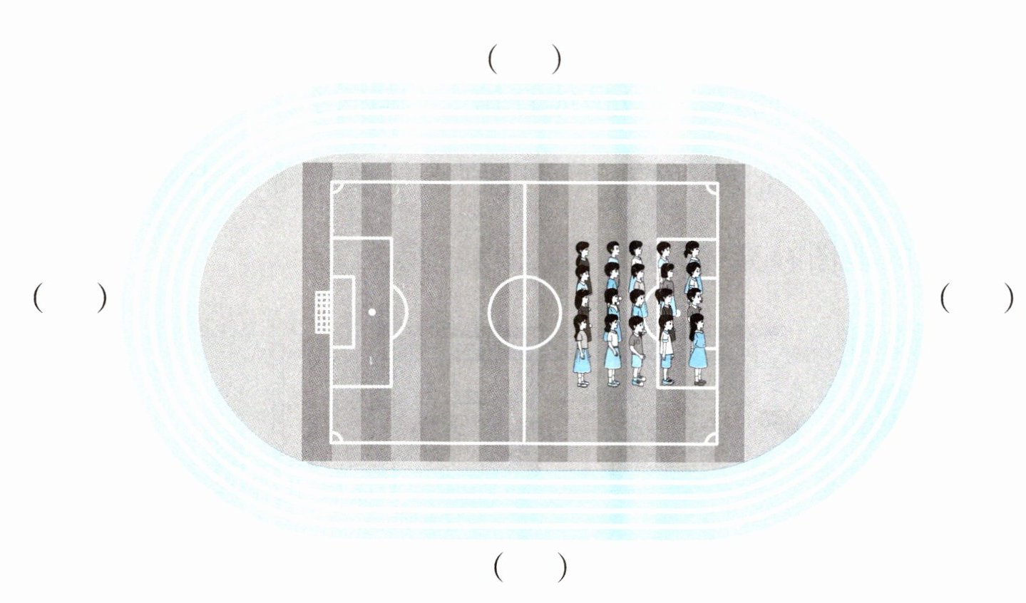1.早晨,二(1)班同学们来到操场集合,面向太阳排队站好,请你根据下图中的信息在括号里填写“东”“南”“西”“北”。