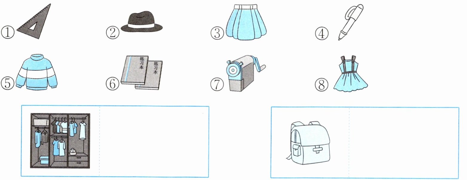 1. 把物品放到正确的位置。(填序号。)