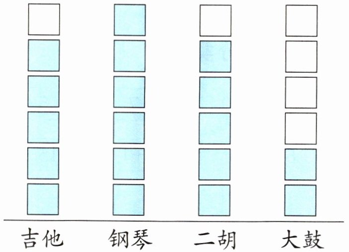 (2)最喜欢钢琴的同学比最喜欢大鼓的多()人。