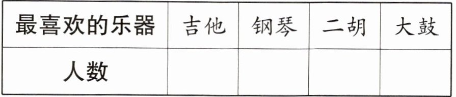 | 最喜欢的乐器 | 吉他 | 钢琴 | 二胡 | 大鼓 |