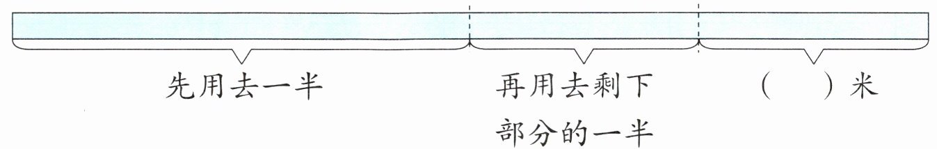 6. 一根彩带,先用去它的一半,再用去剩下部分的一半,最后剩下 5 米。这根彩带原来长多少米?(填一填,算一算。)