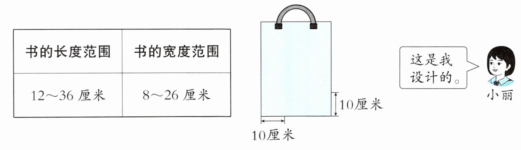 5. 图书馆现征集借书袋尺寸设计方案。小丽设计的借书袋合适吗?请你说明理由。