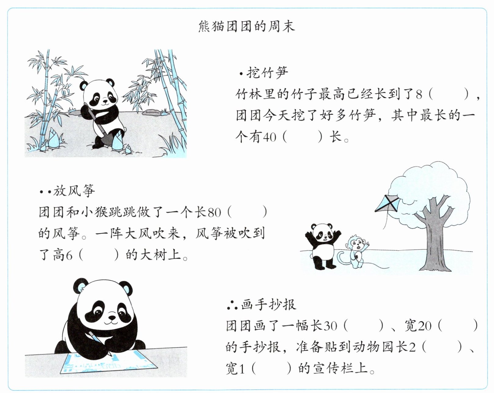4. 读数学故事,在( )里填上合适的长度单位。