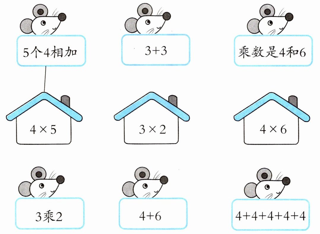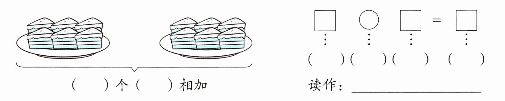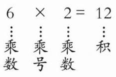 2. 看图填一填,列乘法算式,并写出乘法算式各部分的名称。