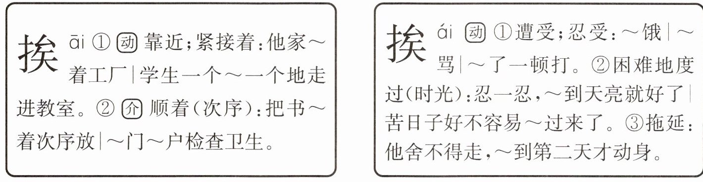 1. 根据下面的词典截图可以判断,这段话中“挨”的读音是
