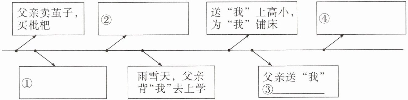 1. ①花钱住客栈 ②买豆腐脑给‘我’吃,做万花筒 ③报考师范 ④父亲送‘我’去无锡师范上学 2. 父爱 梦 无限怀念和感激 3. 姑爹的渔船 父亲的爱