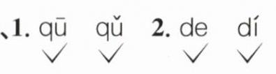 2. 盲姑娘从琴声中知道,给她弹曲子的$\underset{\cdot}{(de √ dí)}人\underset{\cdot}{(de dí √)}$确是贝多芬。