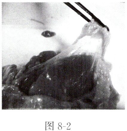3. 找出脂肪。脂肪通常呈小块状,附在皮肤下面,呈微黄色(图 8 - 2)。脂肪属于