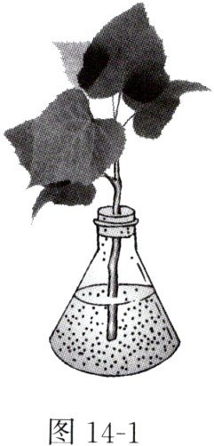 在“观察茎对水和无机盐的运输”活动中,实验装置(图14-1)中的枝条应尽可能多带些叶,原因是什么?