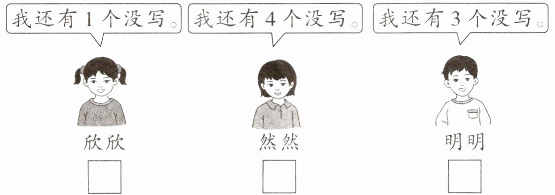 六、每个人要写5个字,现在谁写得最多?在$□$里画“√”。