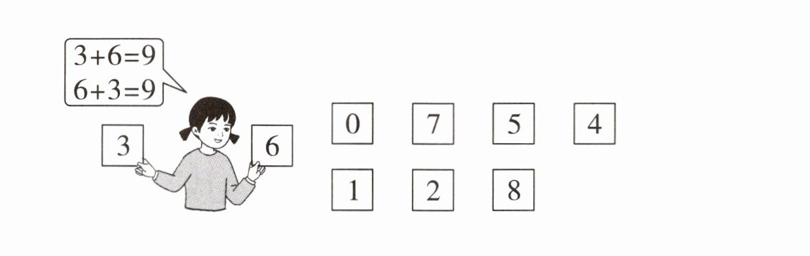 五、哪两张卡片上的数相加得8?哪两张卡片上的数相加得9?请你写一写。