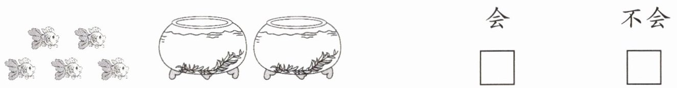 五、要把 5 条鱼放进两个鱼缸(每个鱼缸至少有 1 条鱼),每个鱼缸里的鱼会同样多吗?(在正确答案下面的$□$里画“√”)