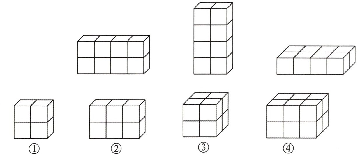 3. 芳芳用 8 个同样大的正方体摆了一个长方体,从前面看到的图形如右图。她摆出的是下面哪个物体?