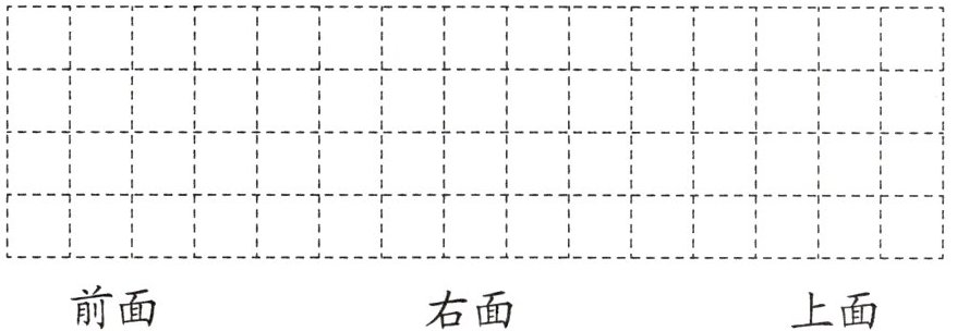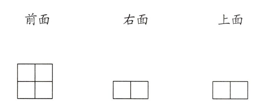 2. 根据下图,在方格纸上画出从前面、右面和上面看到的图形。