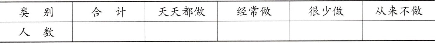 | 类别 | 合计 | 天天都做 | 经常做 | 很少做 | 从来不做 |