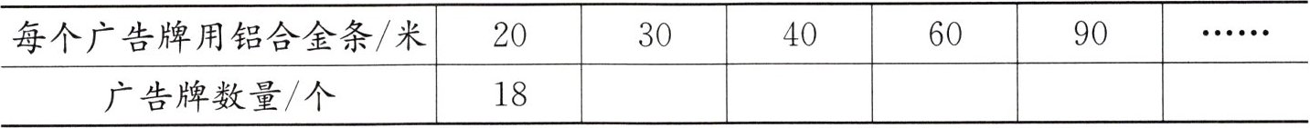 宏达广告公司运来一批铝合金条,如果每个广告牌要用铝合金条20米,这些材料一共可以焊接18个广告牌。如果每个广告牌用铝合金条30米、40米……呢?