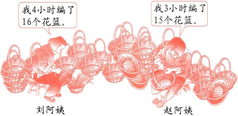 1. 按各自的工作效率计算,刘阿姨10小时可以编花篮多少个? 赵阿姨编65个花篮要用多长时间?