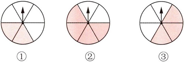 指针落在■区域和□区域的可能性相等 指针落在■区域的可能性大 指针落在■区域的可能性小