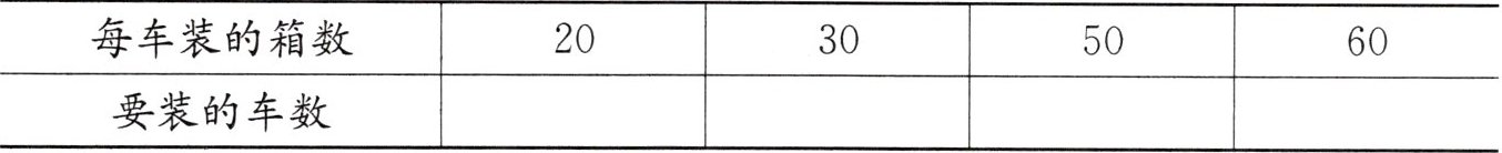 15 10 6 5 每车装的箱数越多,要装的车数就越少。