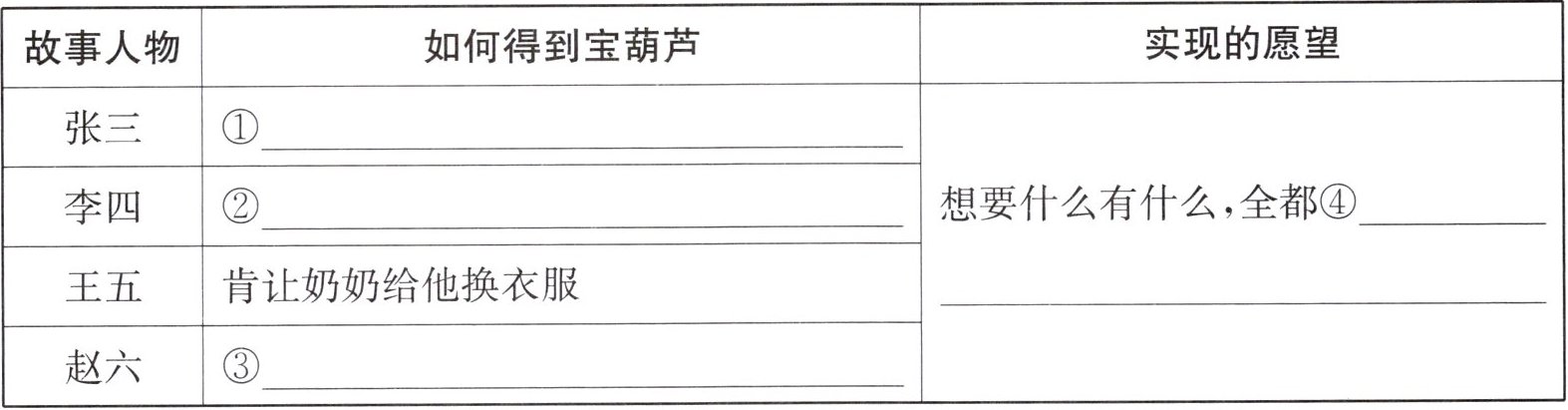 三、根据文中奶奶讲的故事,完成下面的表格。