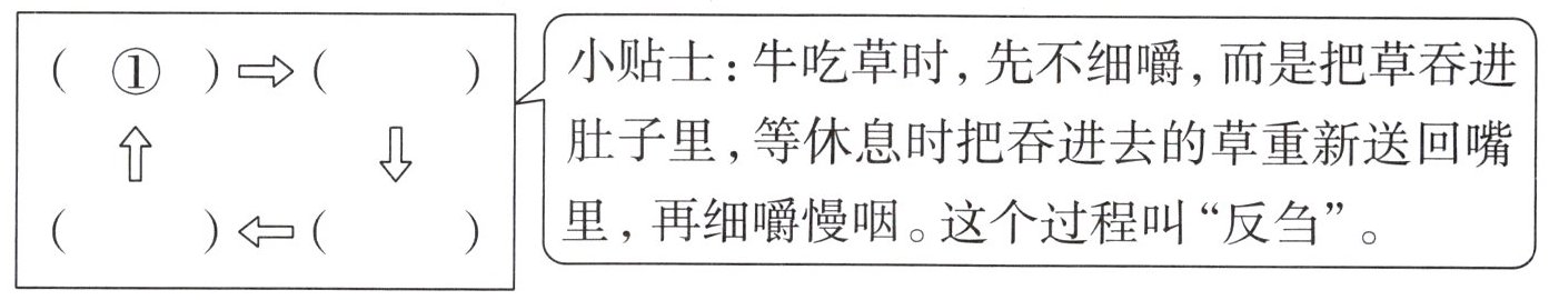 四、根据课文内容,补充红头在牛肚子里旅行的路线。(填序号)