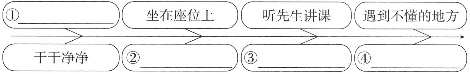 |①______|坐在座位上|听先生讲课|遇到不懂的地方|