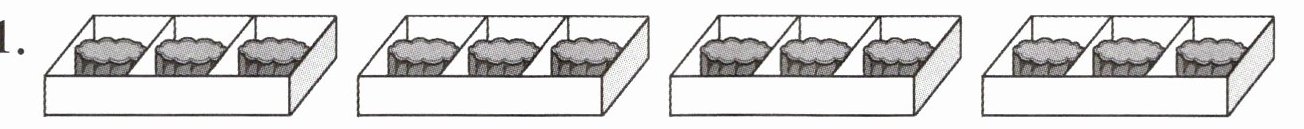 一共有( )个月饼,每( )个一份,平均分成了( )份。