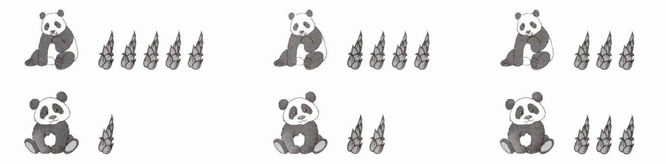 一、帮熊猫兄弟分竹笋。哪些分法是平均分?在( )里打“√”。