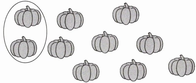 一共有( )个橘子,每( )个一份,平均分成了( )份。