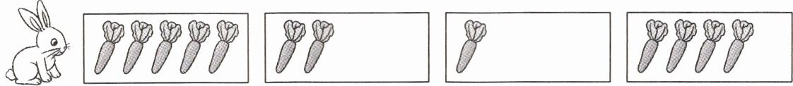 1. 数出胡萝卜总数:5+2+1+4=12(根)
