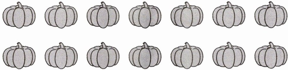 1. 有 14 个南瓜,如果每个篮子放 2 个,那么需要( )个篮子。